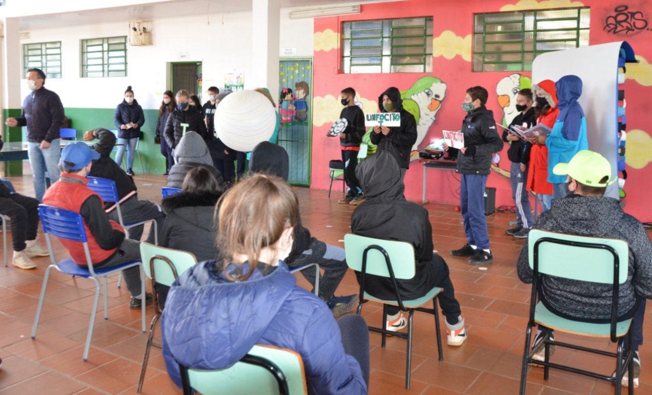 Para o estudante do 9º ano, Oiller Mulava, o teatro tem foco em como acontece a transmissão de vírus de maneira geral e também fala um pouco sobre as vacinas e de que forma as células agem no nosso corpo. Sinto muito orgulho de ver nossos mestres apresentando e nos inspirando e neste momento para nós que somos estudantes, serve como estímulo para seguir sempre em frente estudando.