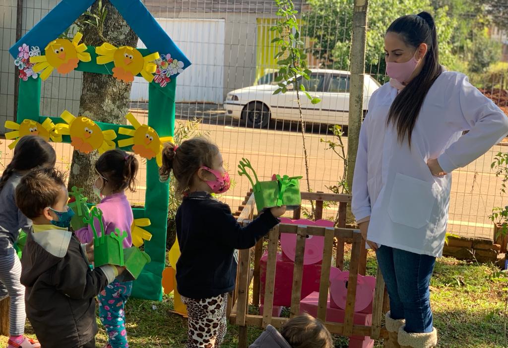 A ideia inicial era que eles conhecessem os animais, como vivem, não sendo possível nesta época realizar passeios, e a gente resolveu construir aqui no CEIM. A parte que mais surpreendeu as crianças foi quando perceberam que saia leite da vaquinha, disse que a professora Priscila do Prado.