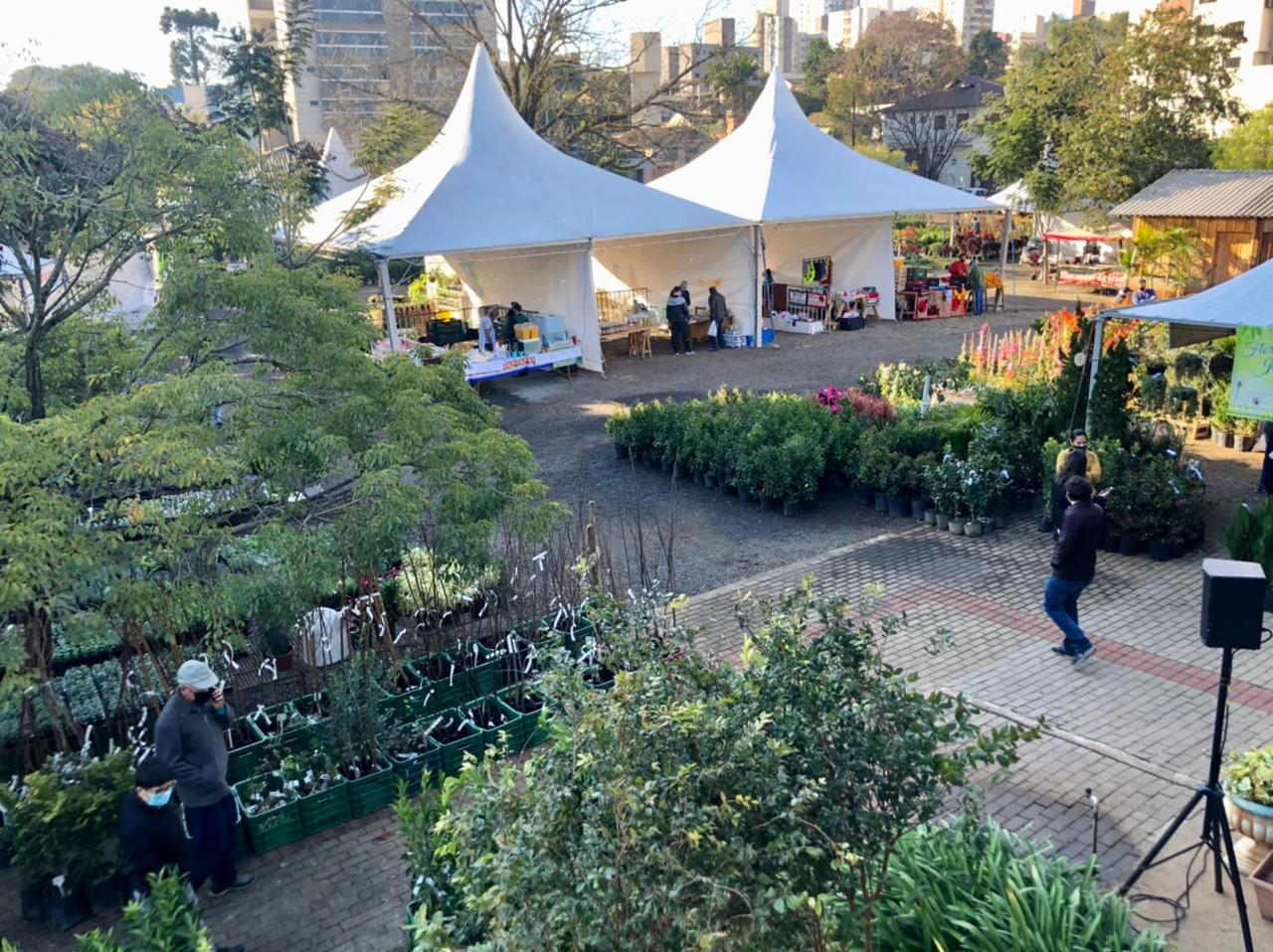 São mais de 20 expositores que estão instalados no pátio do Mercado Púclico, comercializando mudas de árvores frutíferas, flores, artesanato e mel, entre outros produtos. Para quem quiser comer um pastel, também tem. O horário de funcionamento é das 8h às 18h.