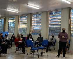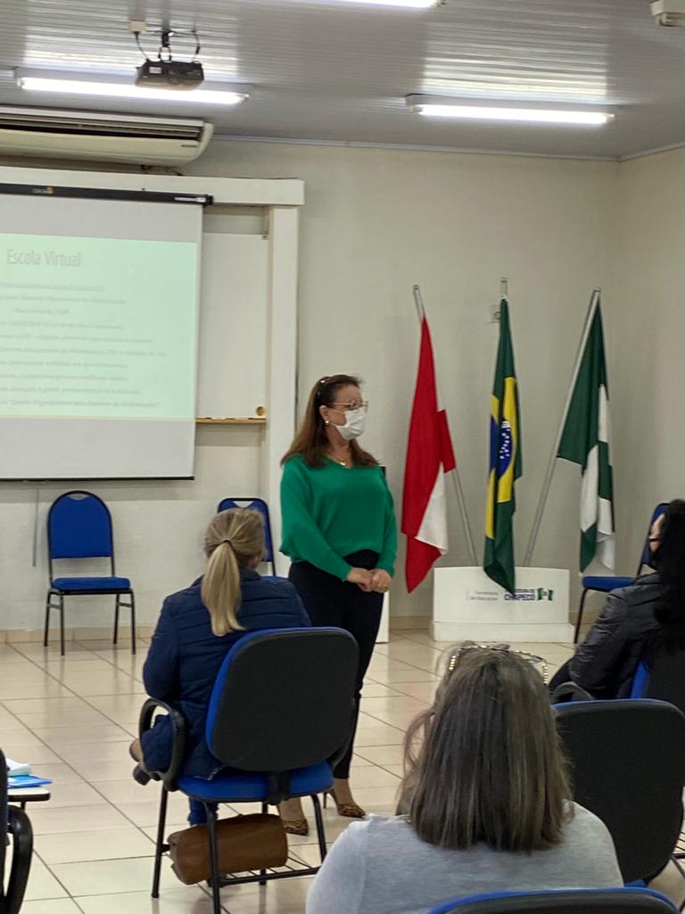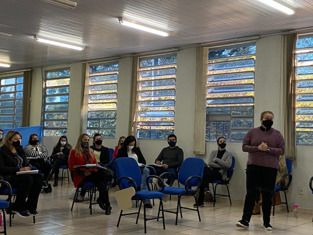 O setor de Articulação e Gestão Educacional da Secretaria Municipal de Educação de Chapecó promoveu nesta quinta e sexta-feira uma capacitação para os gestores das 84 Instituições Educativas. O grupo foi dividido em quatro subgrupos, sendo que cada um deles teve a formação com duração de três horas, respeitando o distanciamento e fazendo uso de máscaras e álcool em gel.