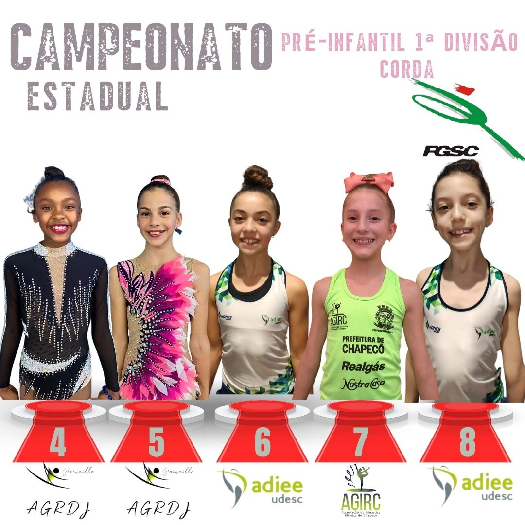 No fim-de-semana as atletas da Associação de Ginástica Rítmica de Chapecó (Agirc) entraram em quadra e fizeram bonito no Campeonato Estadual Pré-Infantil, promovido pela Federação de Ginástica de Santa Catarina. Participaram do Campeonato 20 atletas com idades entre 9 e 10 anos: