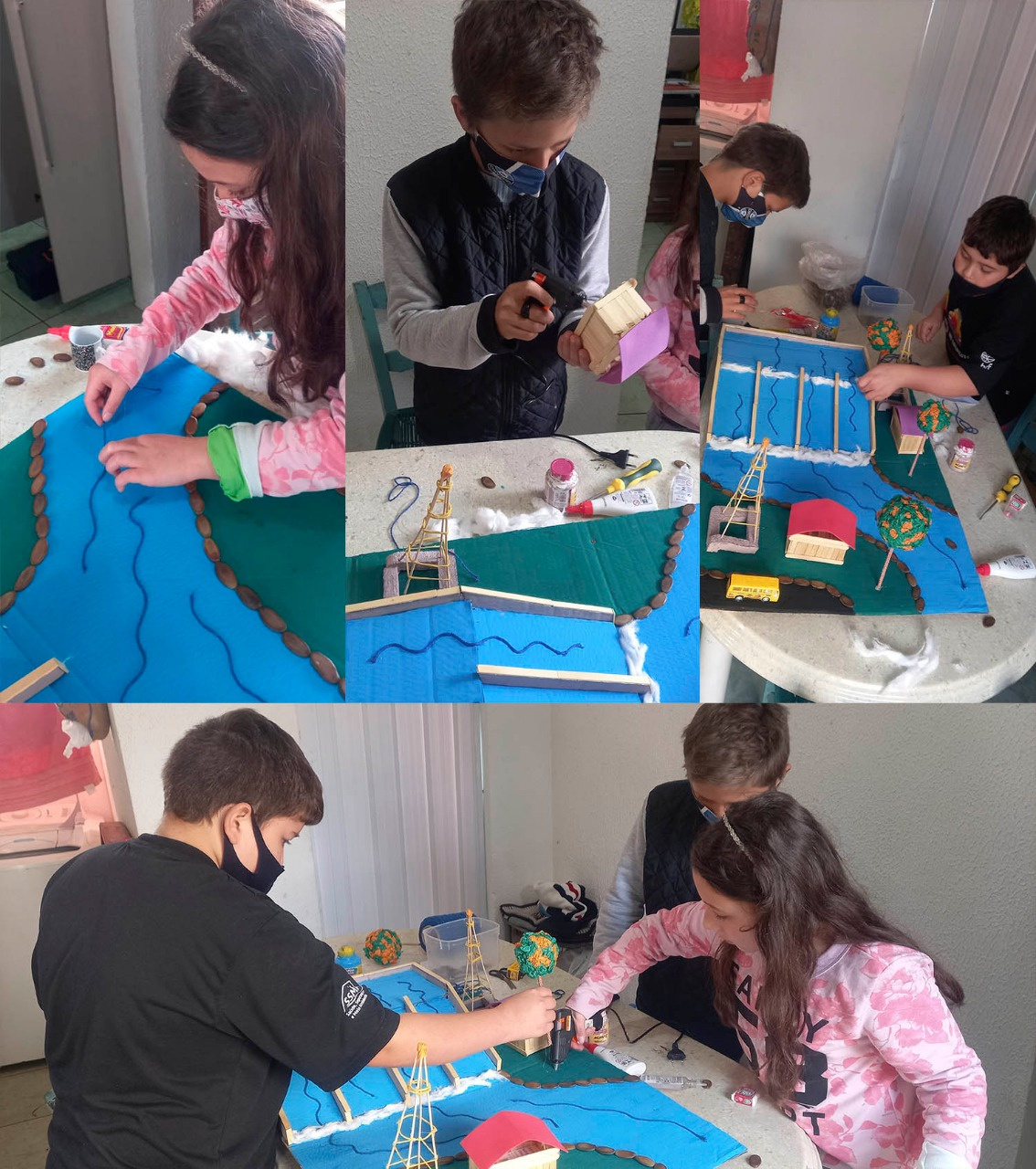 O trabalho foi proposto e mediado pela professora da turma, Maria Ilone Moreira, a qual explicou que o conteúdo abrangeu vários componentes curriculares e a construção das maquetes se concretizou graças ao envolvimento e dedicação das famílias, eu enviava a explicação e regras no grupo de WhatsApp e solicitava que me enviassem fotos. A família e os alunos podiam me chamar, caso tivessem dúvidas.
