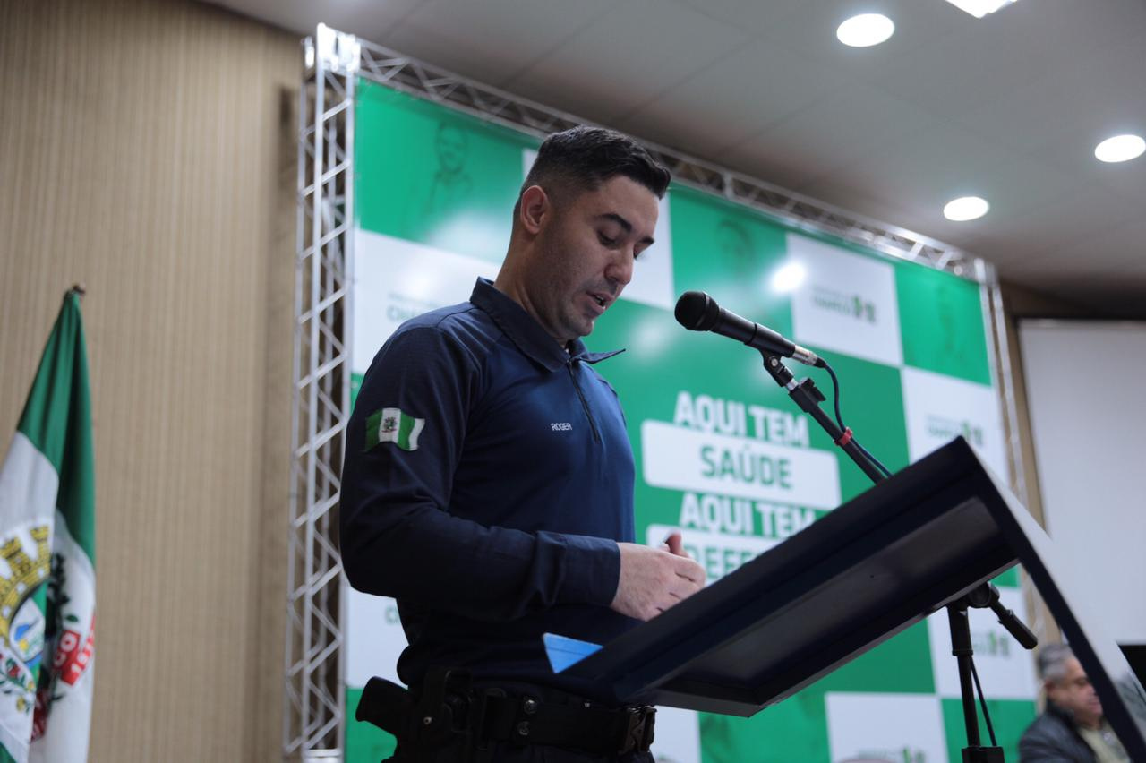 Nós criamos a lei da Guarda Municipal, que depois foi implantada pelo meu sucessor, José Cláudio Caramori, para cuidar do patrimônio público mas ela foi além de sua função e ajudou também as forças policiais em ocorrências, dando mais segurança para a população. Hoje estamos recebendo doações de 13 revólveres 38 da Polícia Militar e 20 do DEAP e 70 pistolas novas (.40 PT940) da Polícia Civil, numa ação de integração que estamos realizando, com o apoio de nosso consultor, Márcio Bueno. Também temos o Leuze na Segurança Pública que é alguém que tem muito conhecimento e experiência na área, disse o prefeito.