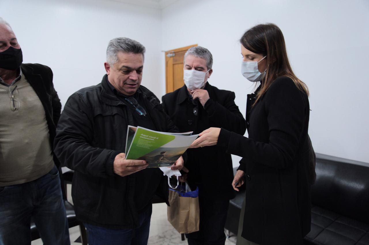 A prefeita de Cruz Alta, Paula Rubin Facco, esteve em Chapecó nesta terça-feira, acompanhada de uma comitiva, para conhecer as ações da Administração Municipal. Ela também trouxe materiais falando da terra de Érico Veríssimo e entregou ao prefeito João Rodrigues.