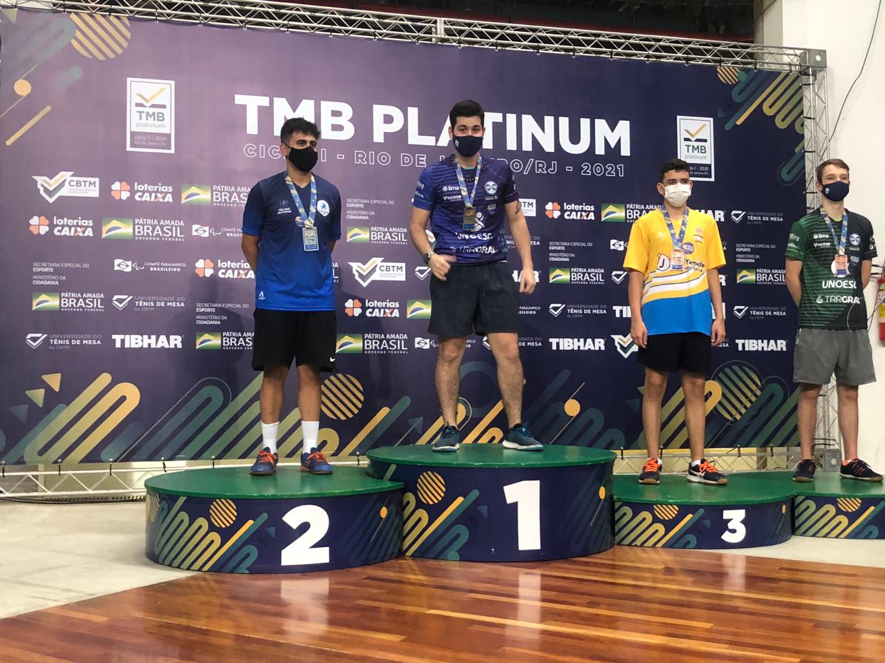 A equipe Chapecoense de Tênis de mesa/Prefeitura Municipal/Trrgral/SICOOB/ Unoesc/Maxsul/Lima Limpeza/Rating Seguros/Mantomac/CSM Prod. Químicos esteve disputando na última semana a 1ª Etapa do Circuito Brasileiro TMB Platinum de Tênis De Mesa 2021. E a bagagem veio mais pesada com duas medalhas conquistadas. A de Ouro foi com o título do Absoluto C masculino do atleta Bruno Moleda. No domingo, na Arena Carioca 1, o ele derrotou Messias Santos (AIEL São José dos Pinhais-PR) por 3 sets a 0 (11/7, 11/9 e 11/8) sagrando-se campeão .
