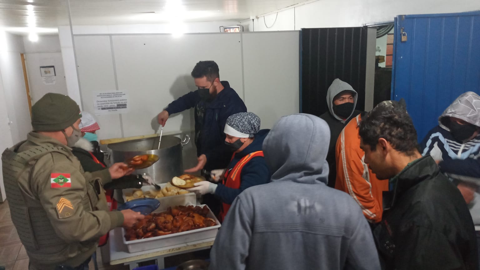 A Força-Tarefa de Enfrentamento às Baixas Temperaturas, formada pela Defesa Civil, Secretaria de Assistência Social, Bombeiros, Polícia Militar, Guarda Municipal de Chapecó e Cruz Vermelha, serviu 110 refeições na noite de quarta para quinta-feira. Um sopão foi confeccionado por voluntários da Cruz Vermelha e foi servido para os indígenas que estão acampados num terreno particular da Avenida Getúlio Vargas e também para pessoas que estão abrigadas na Casa de Passagem. Somente na noite passada 42 pessoas foram abrigadas no local.