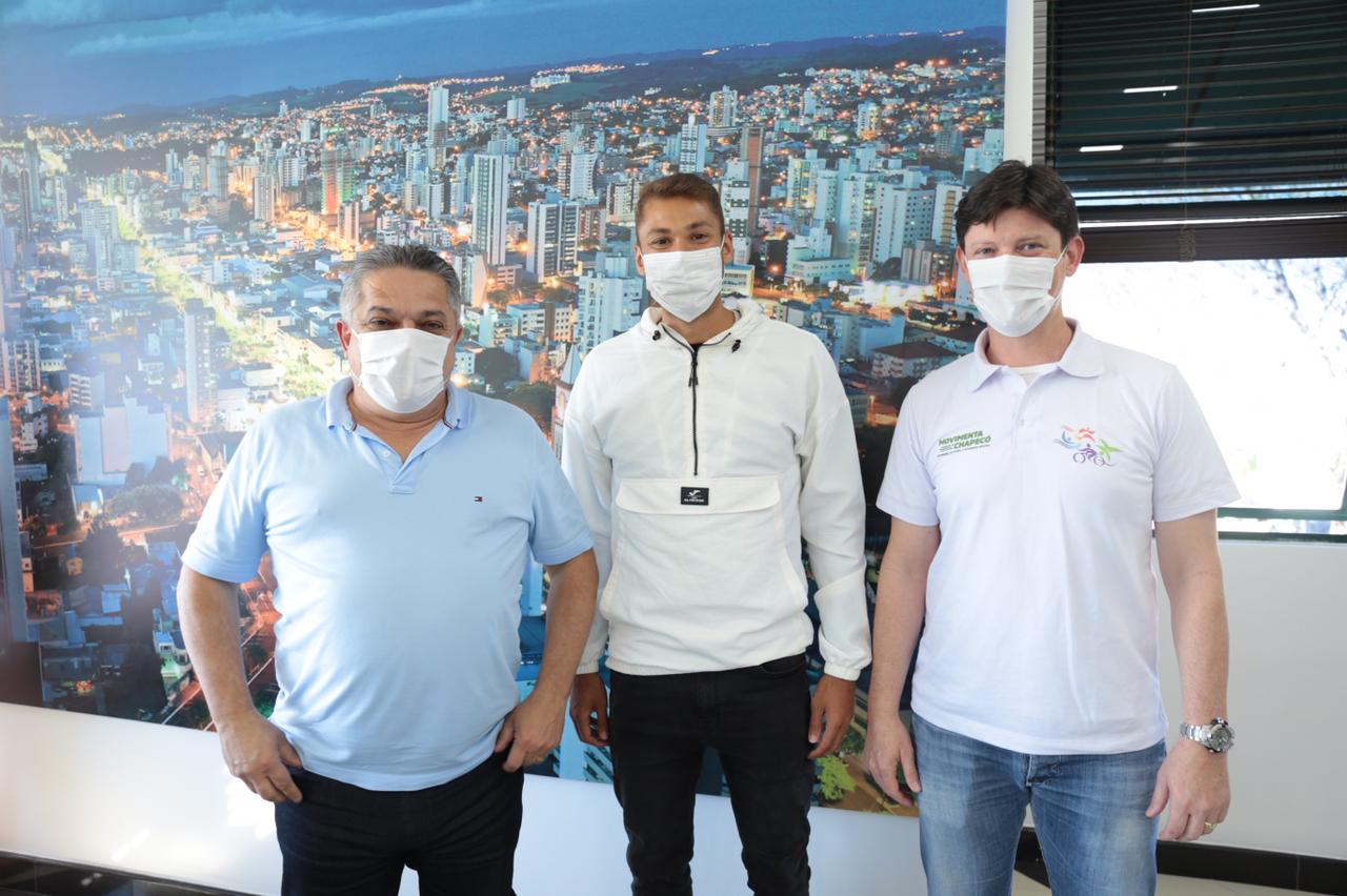 O melhor jogador de futsal do mundo nas últimas duas temporadas, Ferrão, do Barcelona, é de Chapecó. E um aspirante a melhor do mundo, Pito, também é da maior cidade do Oeste. Ambos estiveram nesta semana na Prefeitura de Chapecó, visitando o prefeito João Rodrigues. Pito também visitou o vice-prefeito, Itamar Agnoletto, afirmando que quer manter esse título para a maior cidade do Oeste. Ele estava acompanhado pelo diretor de Esportes e responsável pela Secretaria de Juventude, Esporte e Lazer, Mauro Johann.