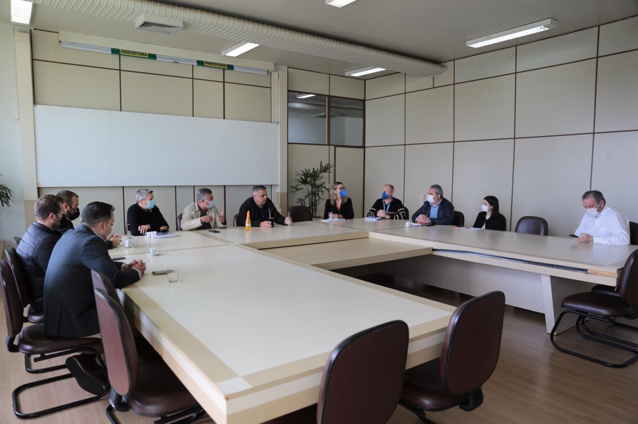 A Administração Municipal de Chapecó realizou nesta manhã uma reunião com representantes das agroindústrias Aurora, BRF e Ecofrigo/Bugio para ampliar a cobertura de vacinação contra a Covid. O prefeito João Rodrigues, o secretário de Governo, Thiago Etges, o secretário de Saúde, Luiz Carlos Balsan, o diretor técnico da Saúde, Luiz Carlos Balsan, o gerente de Vigilância em Saúde, Rodrigo Momoli, e a coordenadora da Vigilância Epidemiológica, Lilian Galão, participaram da reunião.
