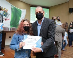 Vocês são exemplo para os 24 mil alunos do município de que, com estudo e dedicação, a gente conquista o que quiser. É importante também o apoio dos pais, da família, na educação. Agradeço também aos professores e gestores pela dedicação, disse Astrit.