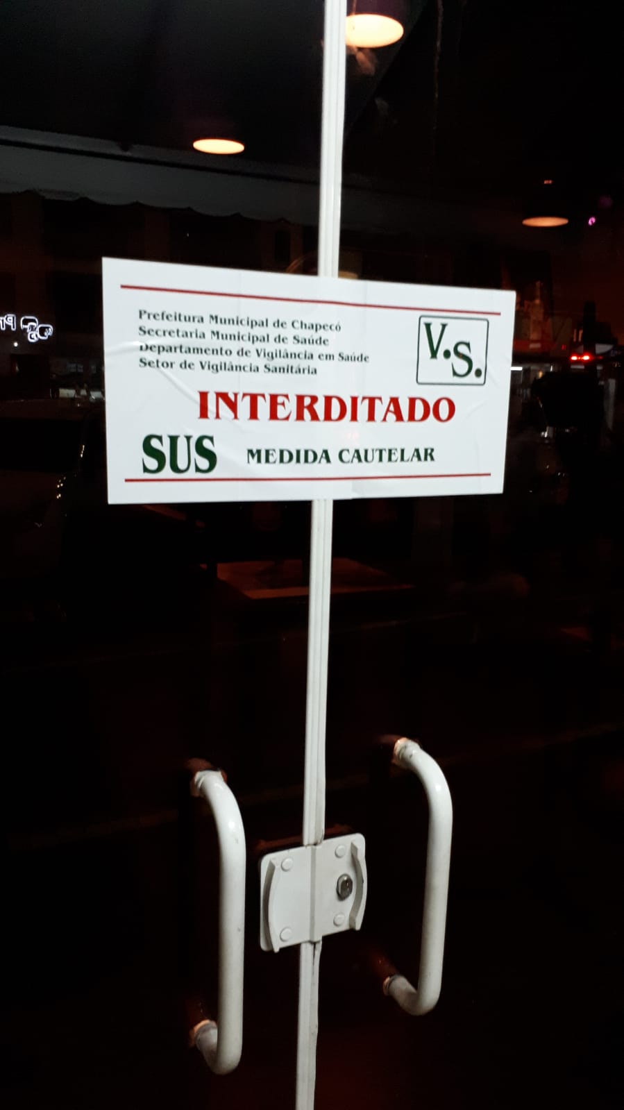 Nas fiscalizações deste domingo um estabelecimento foi interditado, o mesmo já havia sido orientado em fiscalização anterior, porém não tomou nenhuma medida para controlar a ocupação e o cumprimento das normas vigentes em seu estabelecimento, devido a isso foi interditado.