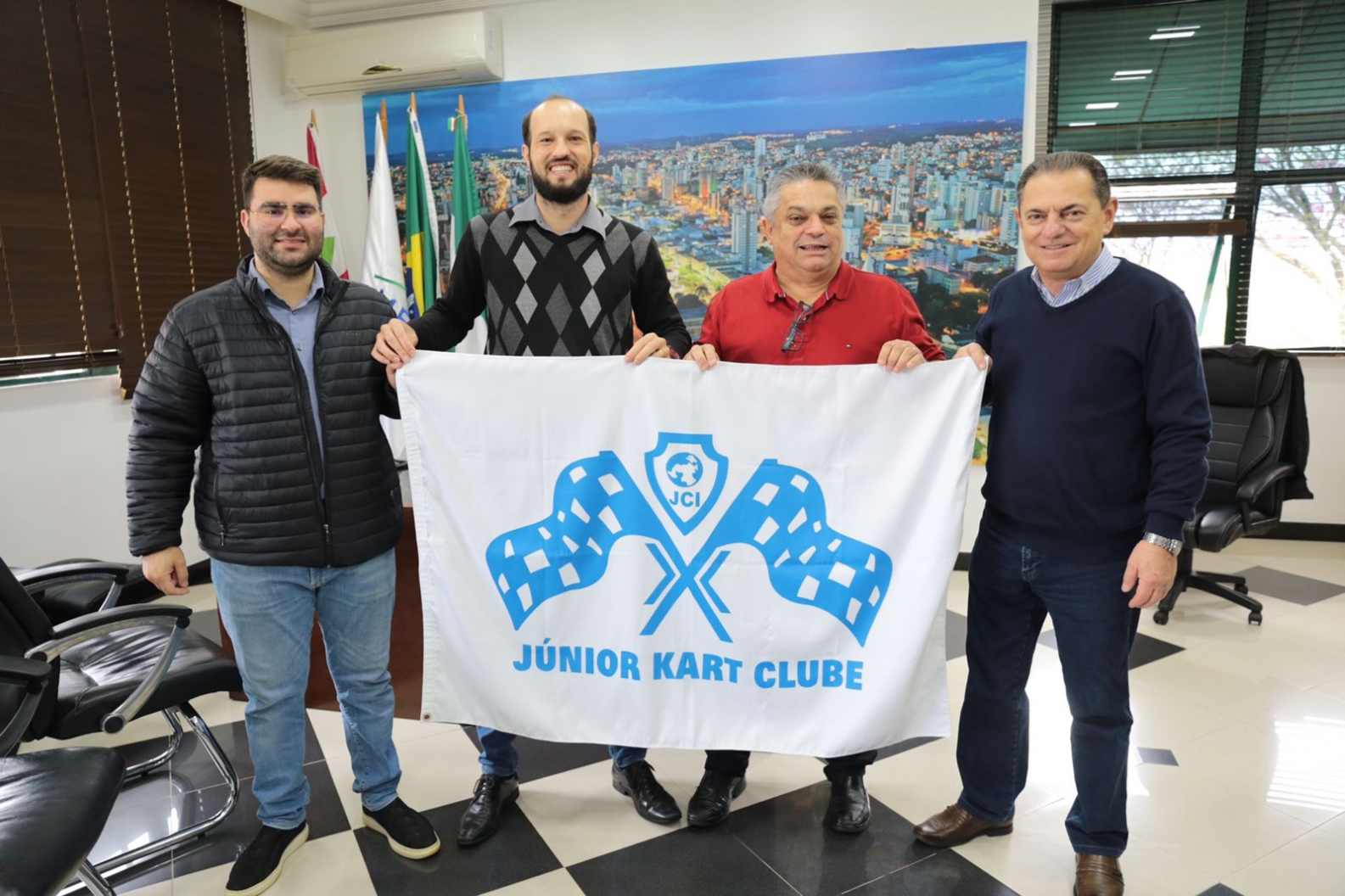 O projeto do novo kartódromo de Chapecó foi apresentado nesta quinta-feira ao prefeito de Chapecó, João Rodrigues, em seu gabinete. Estiveram presentes o presidente do Júnior Kart Clube, Elimar Klever Favetti, o vice, Everton Bernardo Soletti , e o ex-presidente, Sergio Migliorini.