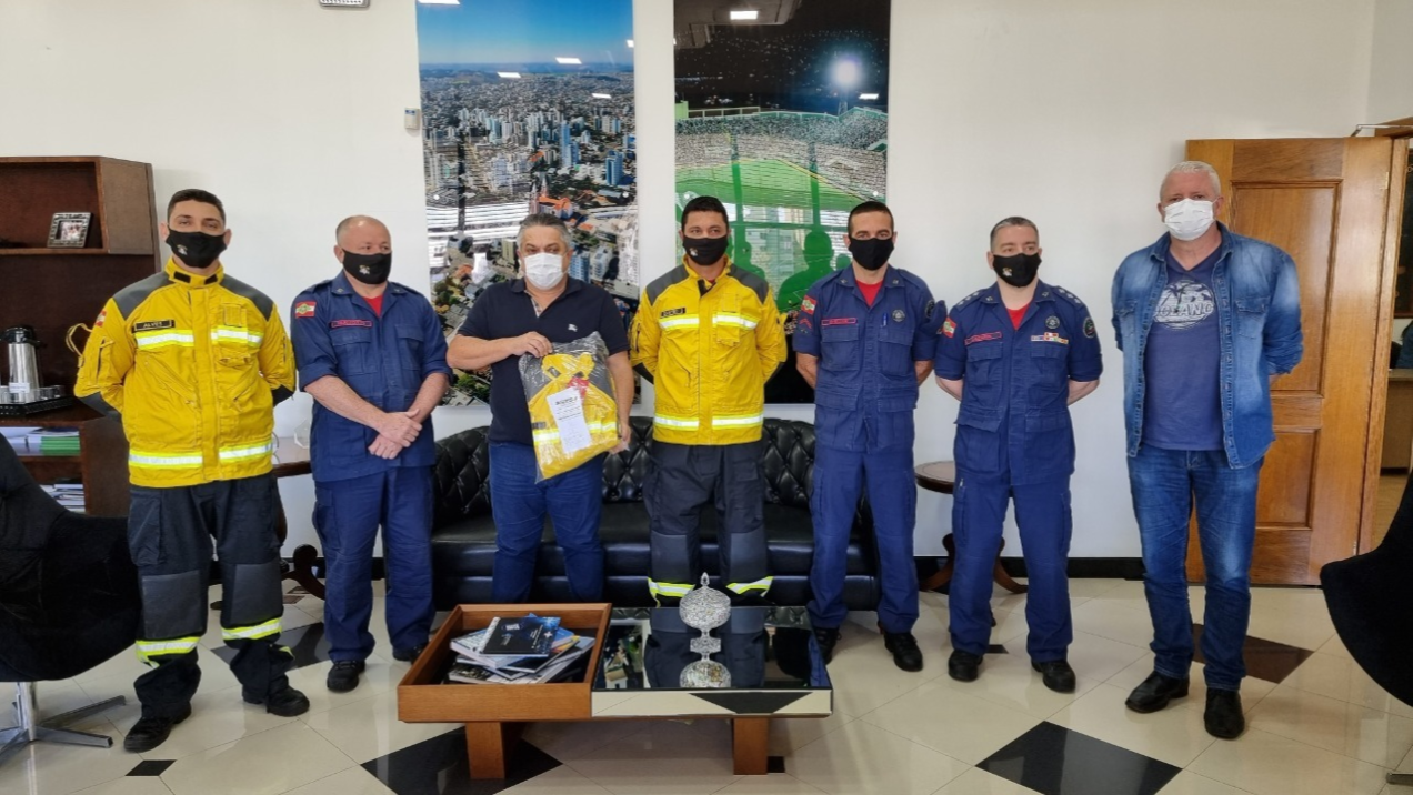 Um ato no gabinete do prefeito de Chapecó, na manhã desta quinta-feira, marco a entrega de equipamentos de proteção individual para os bombeiros. De acordo com o comandante dos 6º Batalhão de Bombeiros Militar de Chapecó, tenente-coronel Walter Parizotto, são 60 equipamentos de proteção individual multimissão, para uso em resgate e incêndios florestais.