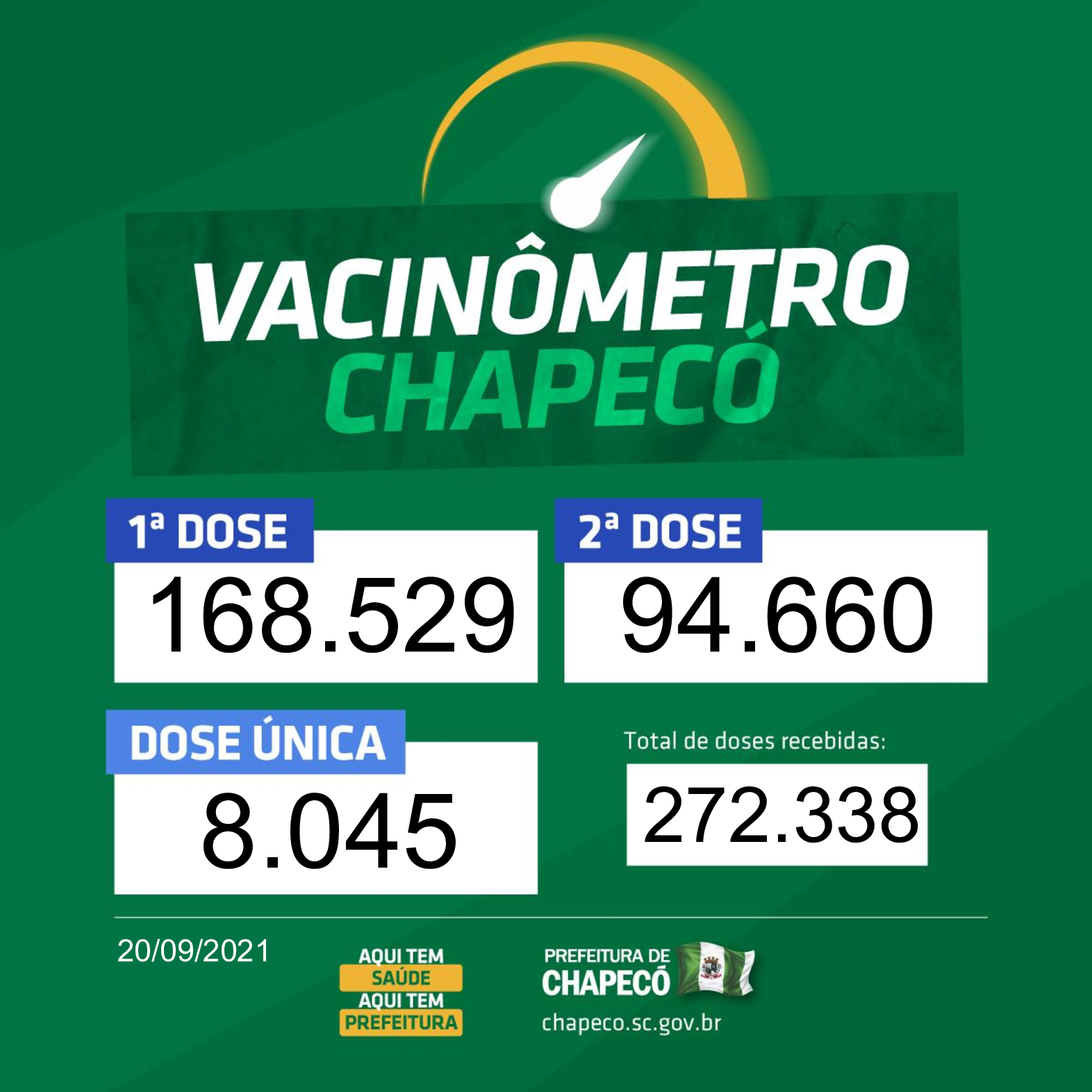 Neste final de semana Chapecó ultrapassou a marca de 100 mil pessoas que já tomaram a segunda dose ou dose única contra a Covid. De acordo com o Vacinômetro desta segunda-feira, 94,6 mil pessoas já tomaram a segunda dose e 8 mil receberam a dose única, somando 102,6 mil pessoas. Isso representa que mais da metade da população adulta já está com a imunização completa.