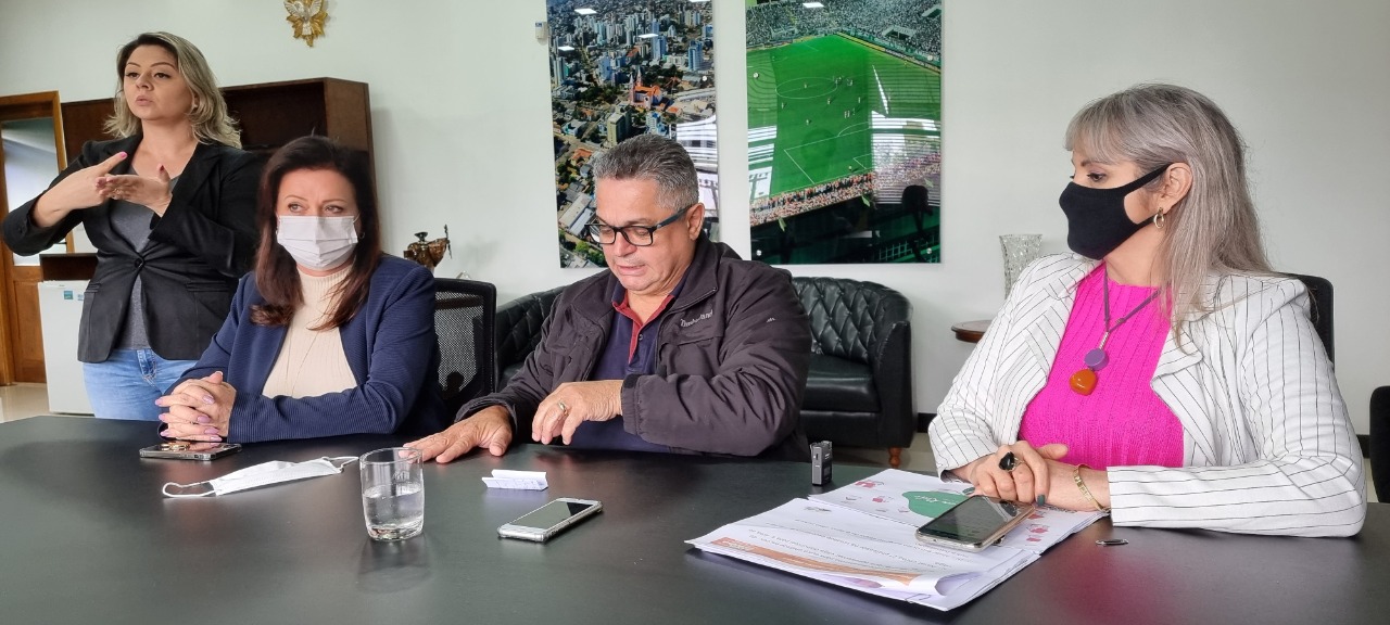 Antes a transmissão foi realizada uma reunião com diretores das escolas envolvidas, pais e professores, no auditório da Prefeitura.