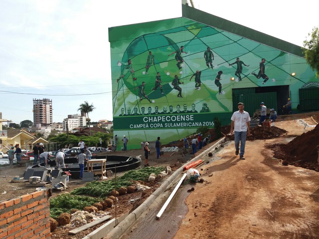 A execução das pinturas nos espaços públicos foi autorizada pelo Município e coordenada pela Associação Chapecoense de Futebol, com o apoio das tintas Killing e Coral.