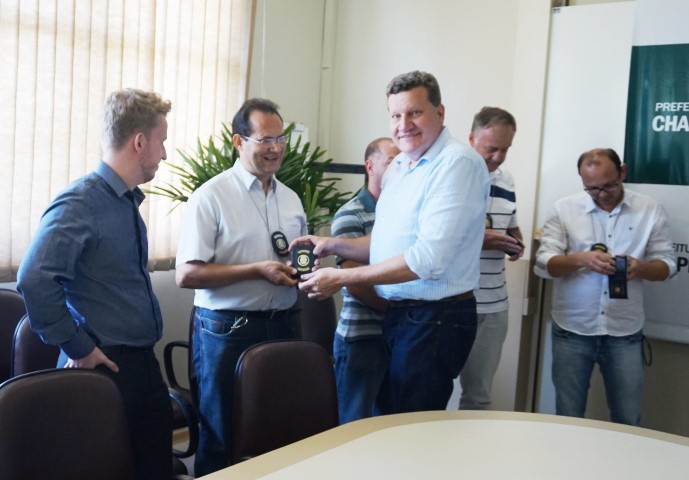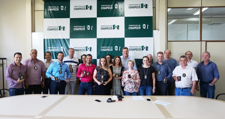 O Prefeito Luciano Buligon e o Secretário de Fazenda Geralci Ampoli entregaram na sexta-feira (15) a Carteira de Identidade Funcional de Auditor de Tributos para 25 servidores municipais que atuam como Fiscal de Tributação II, de Fiscal de Tributação I e de Fiscal de Tributos II do Município de Chapecó. A medida está prevista em Decreto Municipal nº 34.909, de 11 de dezembro de 2017 e tem como objetivo propiciar maior segurança no exercício fiscal fazendário e identificação dos servidores.