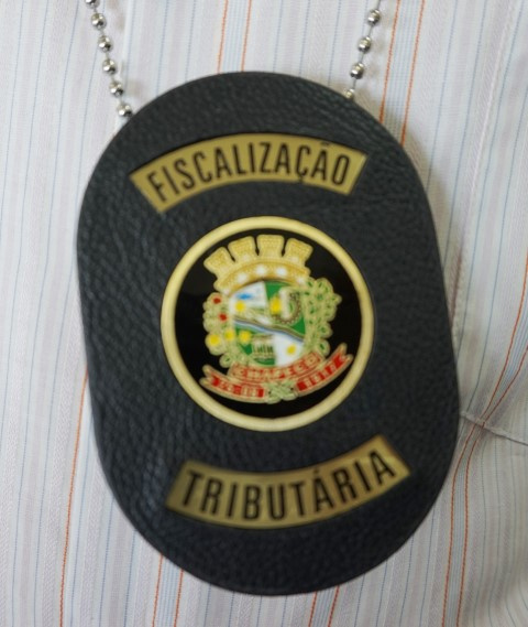 O distintivo de Auditor de Tributos, de Fiscal de Tributação II, de Fiscal de Tributação I e de Fiscal de Tributos II foram confeccionados em metal levemente abaulado, na cor dourada e preta, contendo no anverso o Brasão do Município, com a denominação "Fiscalização Tributária" em sua parte inferior e superior. A carteira de funcional tem fé pública em todo território nacional. O distintivo será usado na veste do Auditor de Tributos, do Fiscal de Tributação II, de Fiscal de Tributação I e do Fiscal de Tributos II da Receita Municipal, mediante presilha própria, em local de fácil visualização, devendo ser usado no cinto do lado direito, ou no lado esquerdo da camisa ou dependurado no pescoço, à altura do peito, por corrente metálica a ser fornecida juntamente com o distintivo. Será obrigatória a utilização do distintivo no exercício de suas atividades externas e facultado nas internas.