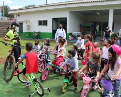 O Centro de Educação Infantil Municipal Juninho realizou ontem, nesta terça-feira, o 1º Cicloturismo: Pequenos Aventureiros, na área externa da instituição. O evento envolveu as turmas de Crianças Bem Pequenas e Crianças Pequenas e faz parte das atividades alusivas ao Dia da Criança. As crianças trouxeram suas bicicletas, patinetes e motocas de casa para realizarem o circuito.