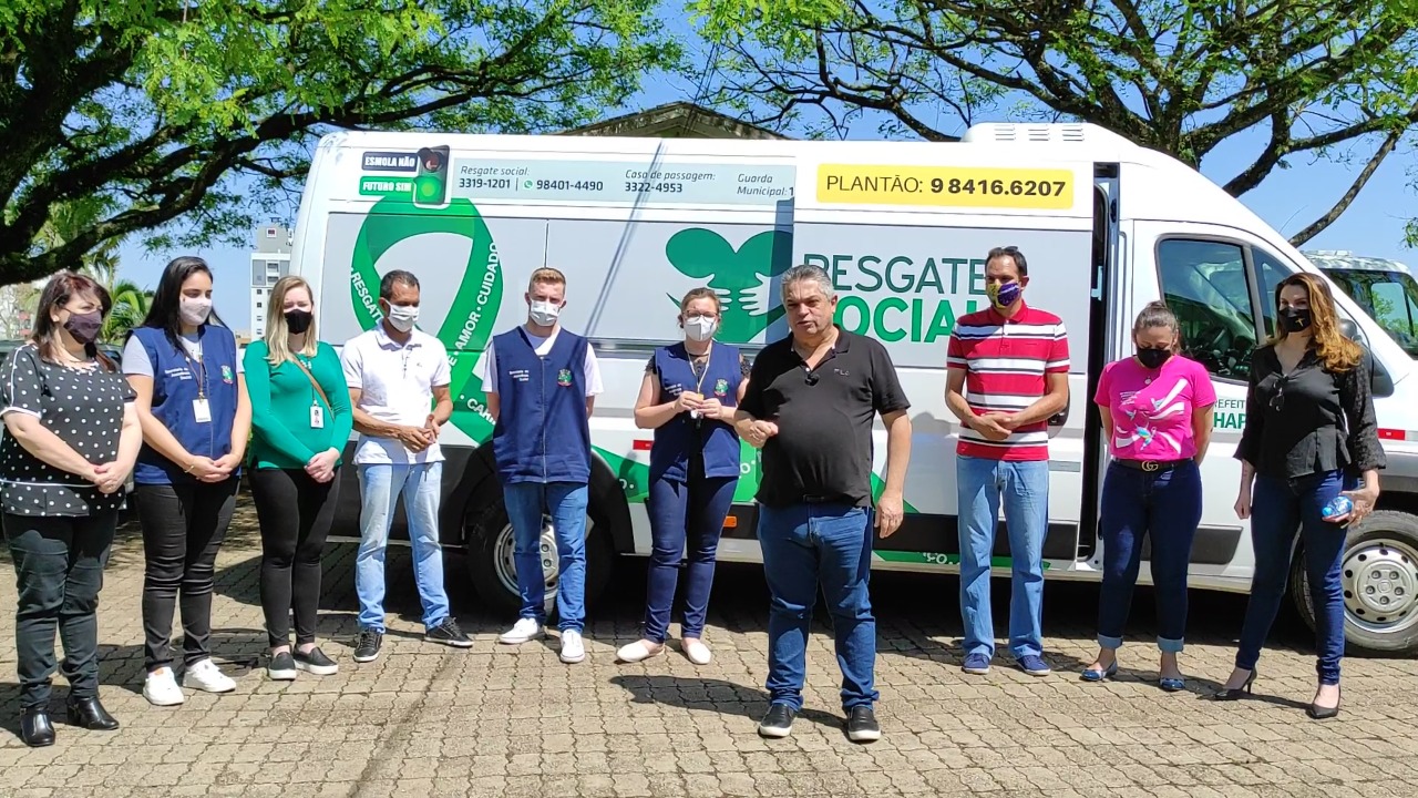 O setor de Resgate Social da Secretaria de Assistência Social de Chapecó recebeu na tarde desta quinta-feira uma van nova, com 16 lugares. A entrega oficial do veículo, adquirido por R$ 220 mil, com recursos de emenda parlamentar da deputada Ana Campagnolo (PSL), foi realizada pelo prefeito João Rodrigues, no pátio da Prefeitura. A secretária de Assistência Social, Elisiani Sanches, acompanhada da equipe, participou do ato.