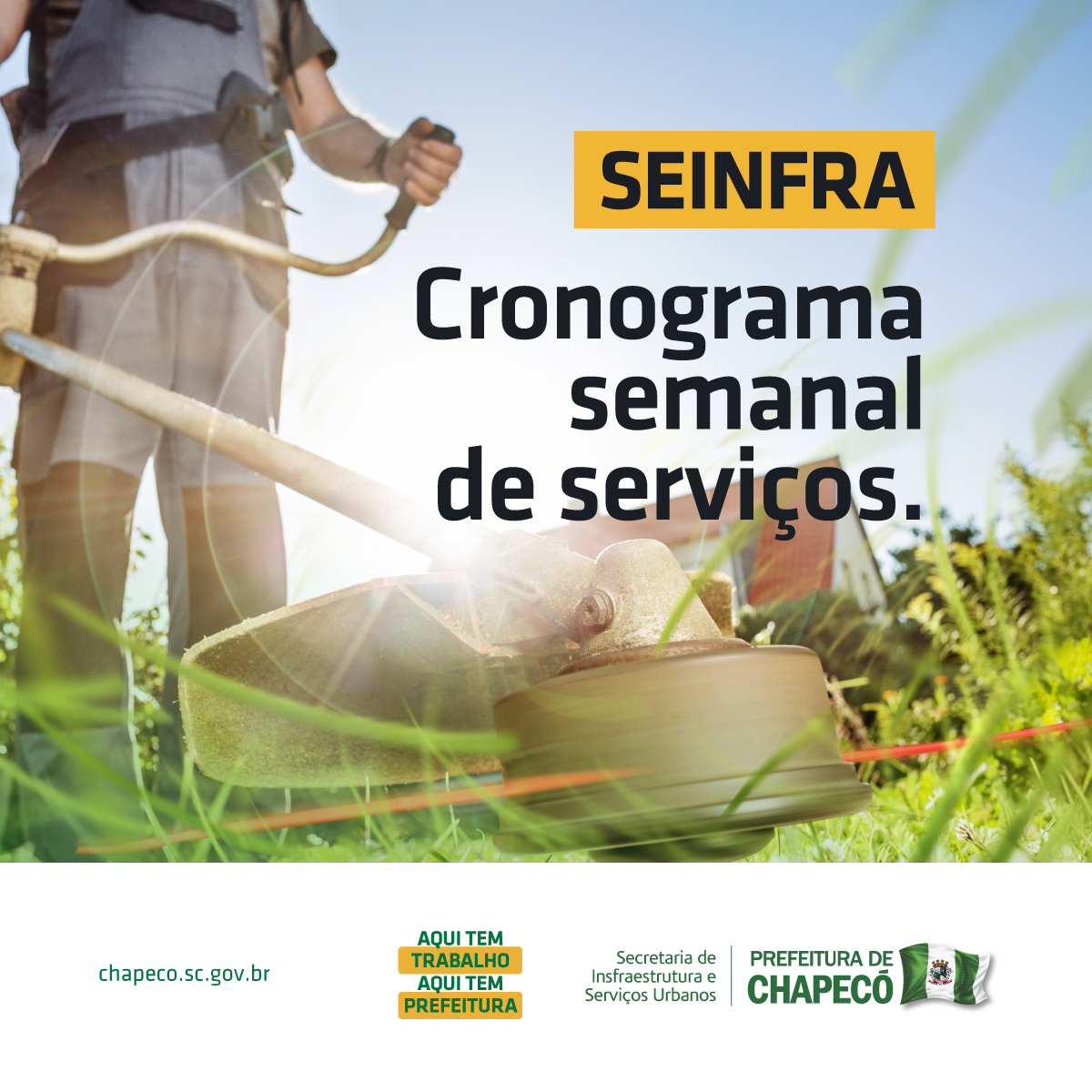 A Secretaria de Infraestrutura Urbana informa o cronograma de atividades previstas para a semana de 18 a 22 de outubro de 2021.