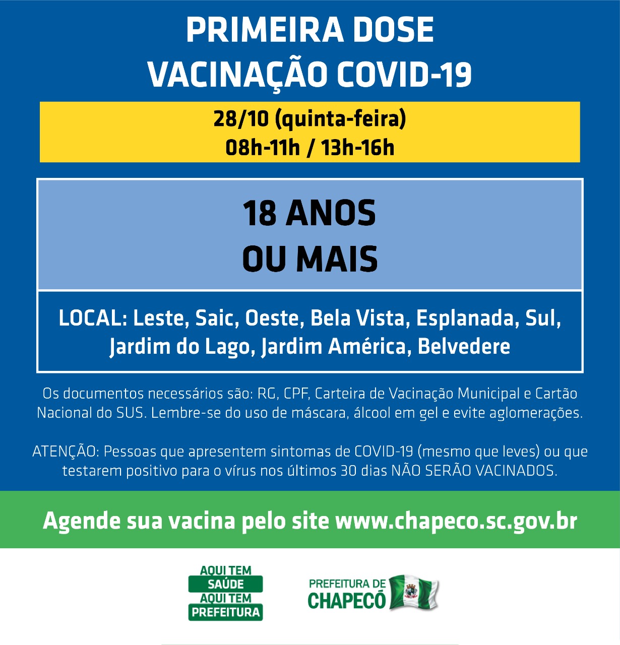Os agendamentos devem ser feitos no site da Prefeitura (www.chapeco.sc.gov.br).