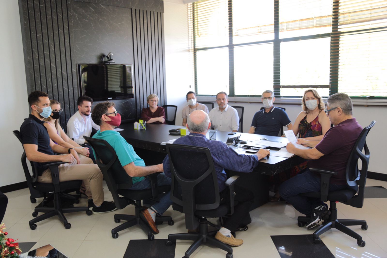 A Administração Municipal de Chapecó realizou na manhã desta terça-feira mais uma reunião para encaminhamento da Programação Natalina. Desta vez estiveram presentes o prefeito de Chapecó, João Rodrigues, a presidente da Fundação Cultural, Roselaine Vinhas, a diretora de Comunicação da Prefeitura, Isabel Machado, o bispo da Diocese de Chapecó, Dom Odelir José Magri, acompanhado de dois padres, o superintendente da Chapecoense, Neto, o presidente da Associação Brasileira das Vítimas com o Voo da Chapecoense (Abravic), Fabiano Porto, e familiares das vítimas da Chapecoense .