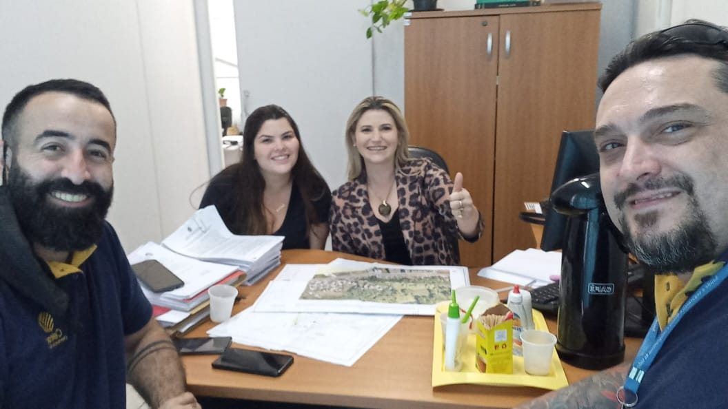 A Diretora de Regularização Fundiária e Habitação de Chapecó, Edi Folle, juntamente com a servidora do Setor de Regularização Fundiária Sabrina Antonini, receberam na sexta-feira a visita do gerente Comercial do Núcleo Oeste da CELESC, Douglas Claiton Carvalho e do Supervisor de Atendimento, Rafael Correa.