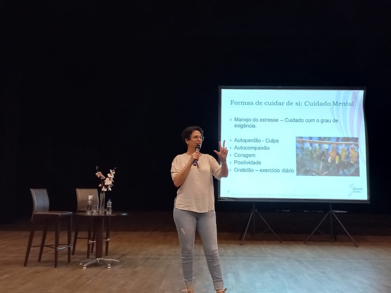 Este, sem dúvida, é mais um momento de cuidado com nossos profissionais, uma vez que o tema abordado pela Dra. Maikelli é de extrema importância para os dias atuais. Sabemos que o autocuidado e o manejo do estresse é algo que afeta a vida de todos e em especial aos profissionais da educação que estão em constante atendimento a crianças, pais e toda a comunidade em diversas situações do cotidiano. A saúde mental é tão importante quanto a saúde física das pessoas, disse a Secretária de Educação, Astrit Tozzo.