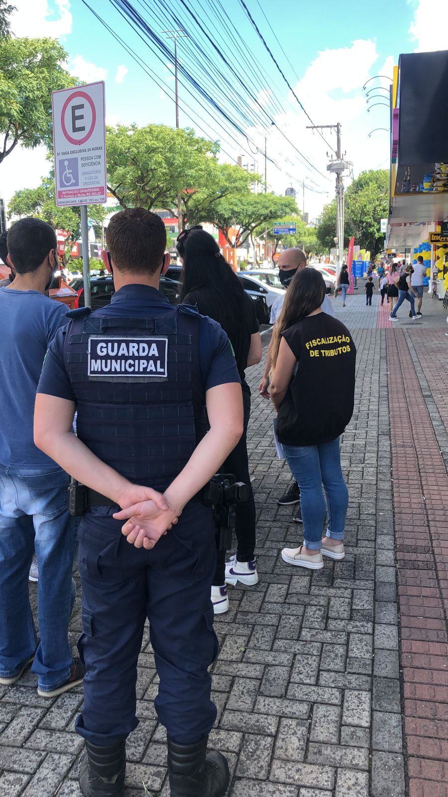 Uma equipe da Prefeitura de Chapecó, composta por servidores do setor de Tributos da Secretaria de Fazenda e da Guarda Municipal, relizaram uma ação de fiscalização dos vendedores ambulantes, nesta sexta-feira, na Avenida Getúlio Vargas.