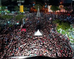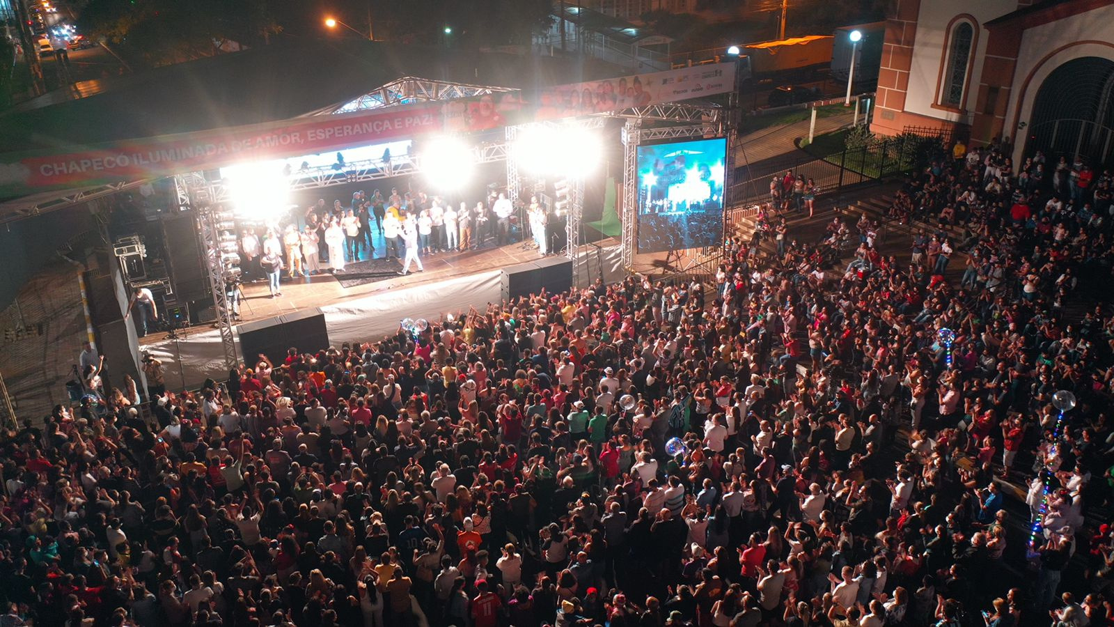 Emoção, religiosidade e alegria marcaram a abertura da Programação Natalina de Chapecó, nesta sexta-feira. A artista Chapecoense Michelli Fortes recepcionou o público que foi chegando na praça Coronel Bertaso. Famílias que há muito tempo não podiam sair na rua e conviver com outras pessoas, devido a pandemia, celebraram a volta dos grandes eventos públicos, em especial neste período natalino.