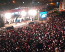 DESCRIÇÃO: EVENTO RELIGIOSO ENVOLVENDO VÁRIAS IGREJAS DE CHAPECÓ GRANDE CONCENTRAÇÃO DE PÚBLICO.