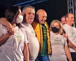 Até o empresário Luciano Hang, veio a Chapecó para a abertura da programação de Natal, acompanhado da esposa e amigos. A abertura contou com a presença do prefeito, João Rodrigues, do vice-prefeito, Itamar Agnoletto, secretários, vereadores e lideranças das entidades e da sociedade civil e militar de Chapecó.