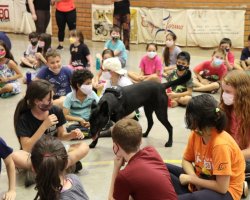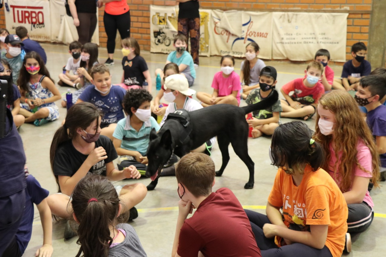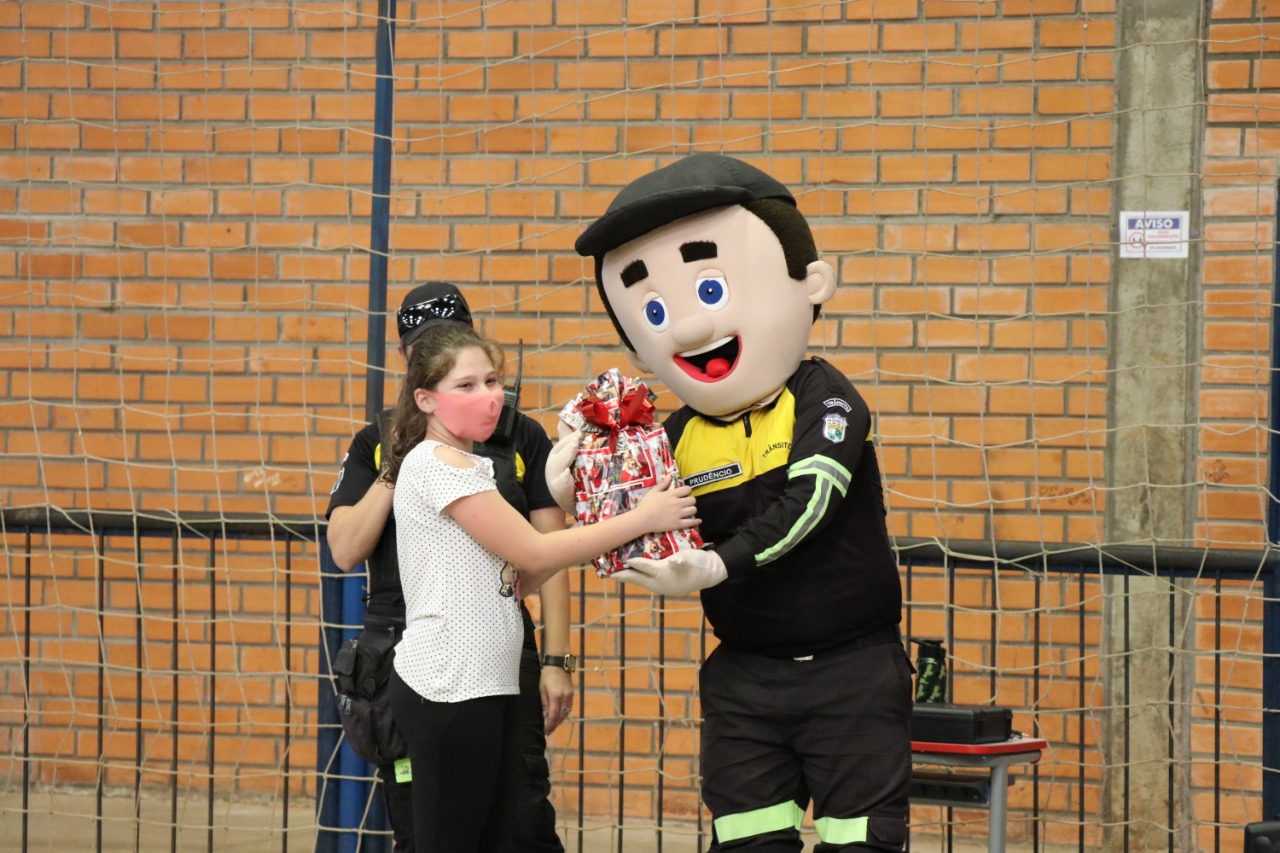 Na tarde de quarta-feira, a Escola Básica Municipal Sereno Soprana recebeu a visita do setor de Educação do Trânsito, da Secretaria de Defesa do Cidadão (Sedemob), para a realização do Dia Festivo na Escola, pois a ganhadora do concurso que nomeou o mascote do trânsito realizado neste ano, Isadora Danin, é aluna da instituição. A atividade envolveu os alunos do 1º ao 5º ano que interagiram com o Mascote, que agora se chama, Prudêncio, além de um cão da Guarda Municipal.