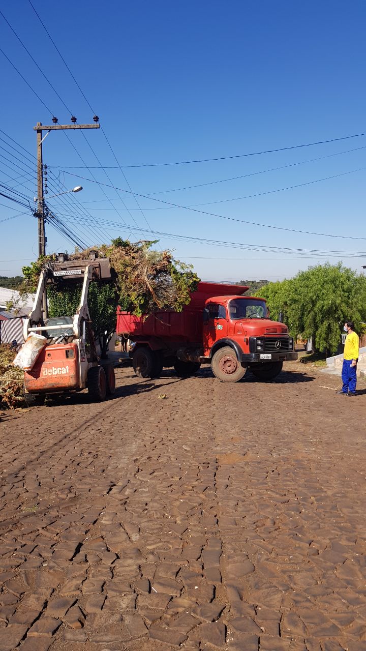 Limpeza Pública: Recolhimento de resíduos sólidos, seguindo o cronograma apresentado e realiza ações nos seguintes Loteamentos: Rosana, Califórnia, Vila Páscoa, Vale das Hortênsias, Vila Esperança, Elias Gallon e Cantarelli.