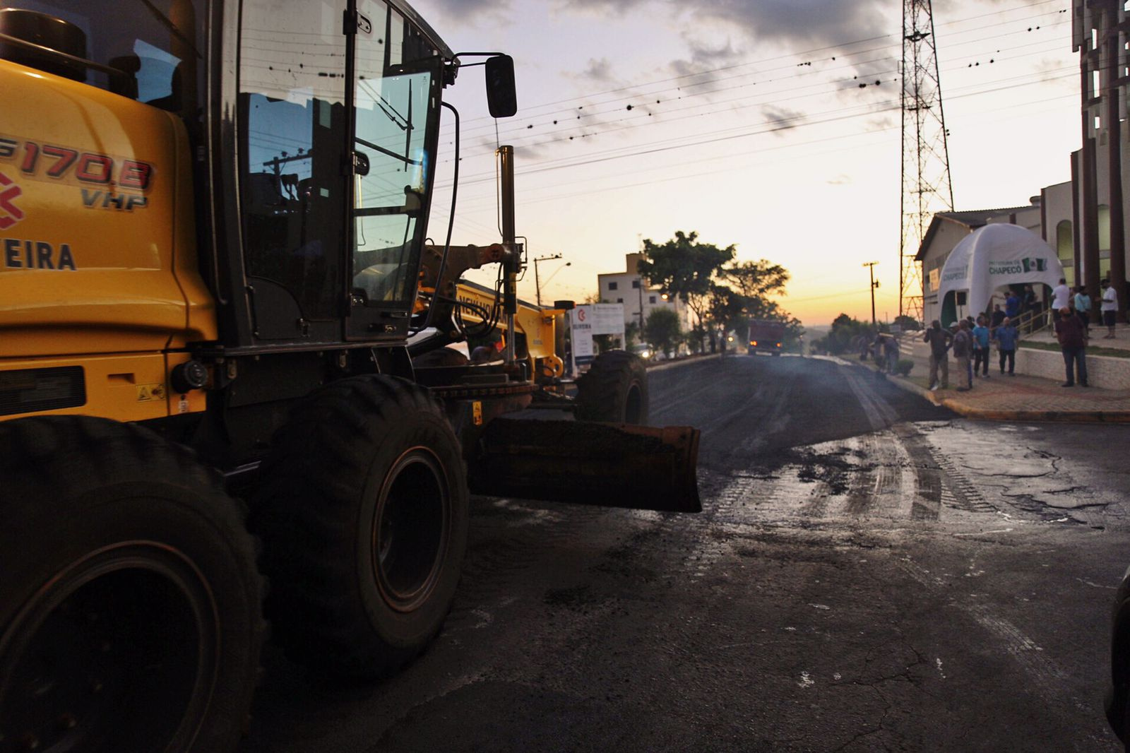 O sol estava se pondo no horizonte quando as máquinas começaram a roncar na rua Brusque, no bairro Bela Vista, em Chapecó. Logo após o ato de assinatura da ordem de serviço pelo prefeito João Rodrigues, e pelo empresário Alcyone Oliveira, da Construtora Oliveira Ltda, já iniciou a obra que vai asfaltar 650 metros da rua Brusque, entre as ruas Wenceslau Braz e Prudente de Moraes.