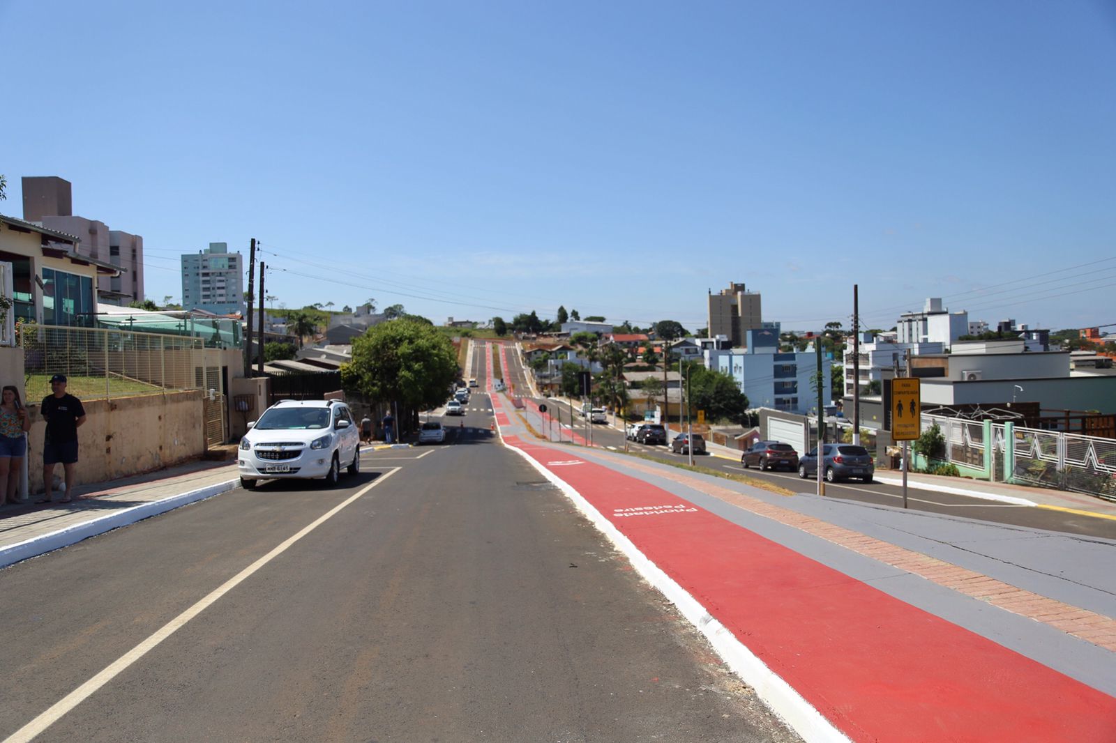 Ciclovia no canteiro central, espaço para caminhada e asfalto novo em 669 metros. Esta é a obra de R$ 1.047.057,16 que foi inaugurada na manhã deste sábado, na rua Curitiba, no bairro Universitário.
