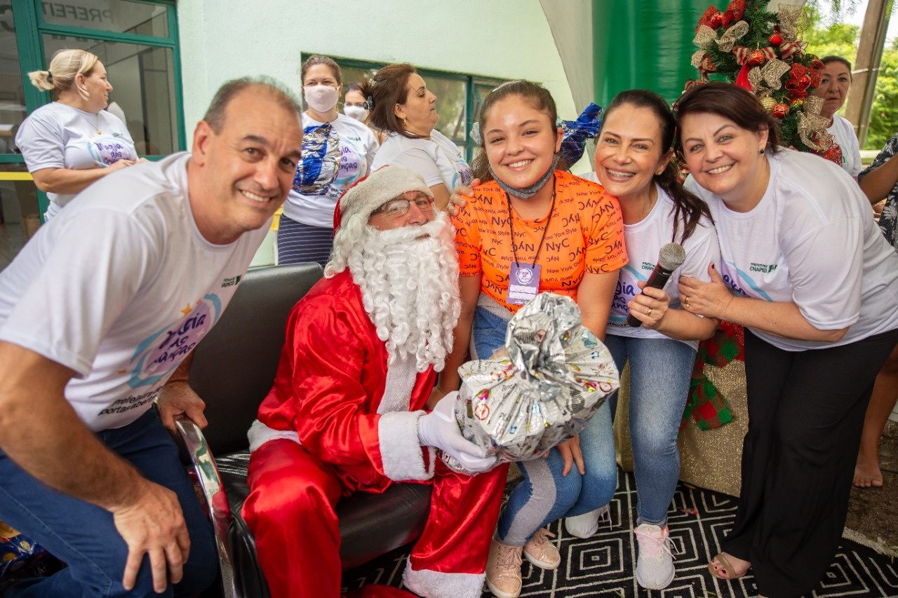 Teve doces, salgados, brinquedos da Rua de Lazer da Fundação de Esporte de Chapecó e entrega de presentes pelo Papai Noel. Secretários, diretores e gerentes da Administração Municipal foram os padrinhos e madrinhas dos presentes.