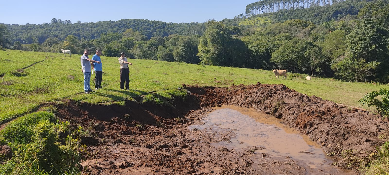 Inaugurada há menos de três meses a Superintendência do Distrito de Marechal Bormann tem priorizado neste ano as ações de combate à estiagem. Na manhã desta quarta-feira, o prefeito em exercício, Adão Teodoro, e o superintendente Aderbal Pedroso, visitaram algumas propriedades. Uma delas foi a de Albeldelin Siega, de 86 anos, morador da Linha Cachoeira. Ele e a esposa Helena criam 21 cabeças de gado e só tinham uma fonte de água para os animais, que está secando. Uma equipe da Prefeitura esteve no local, fazendo a ampliação do reservatório. Segundo Siega, a ação vai ajudar muito.