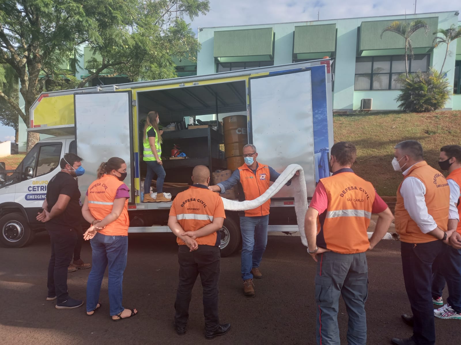 No final da reunião uma empresa de Chapecó fez demonstração de materiais que podem ser utilizados, como por exemplo quando há derramamento de óleo em rio. Como o óleo é menos denso que a água, esta situação pode ser atacada com mantas de contenção e que também absorvem o óleo. Já em caso de acidente com ácido, é necessária outra atuação, explicou o coordenador regional da Defesa Civil, Luciano Peri.