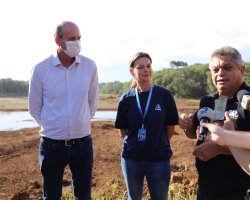 A Casan cumpriu a primeira etapa, que era a contratação dos caminhões para transporte de água bruta do rio Uruguai, caminhões-pipa para abastecer onde não tem água, e a limpeza da barragem do Lajeado São José, coisa que nunca foi feita da maneira como está sendo realizada. Agora vamos para a segunda etapa, que é a perfuração dos poços e o projeto para captação de água no Rio Uruguai, disse o prefeito João Rodrigues, em entrevista coletiva realizado na barragem do Engenho Braus, acompanhado da presidente da Casan Roberta Maas dos Anjos.