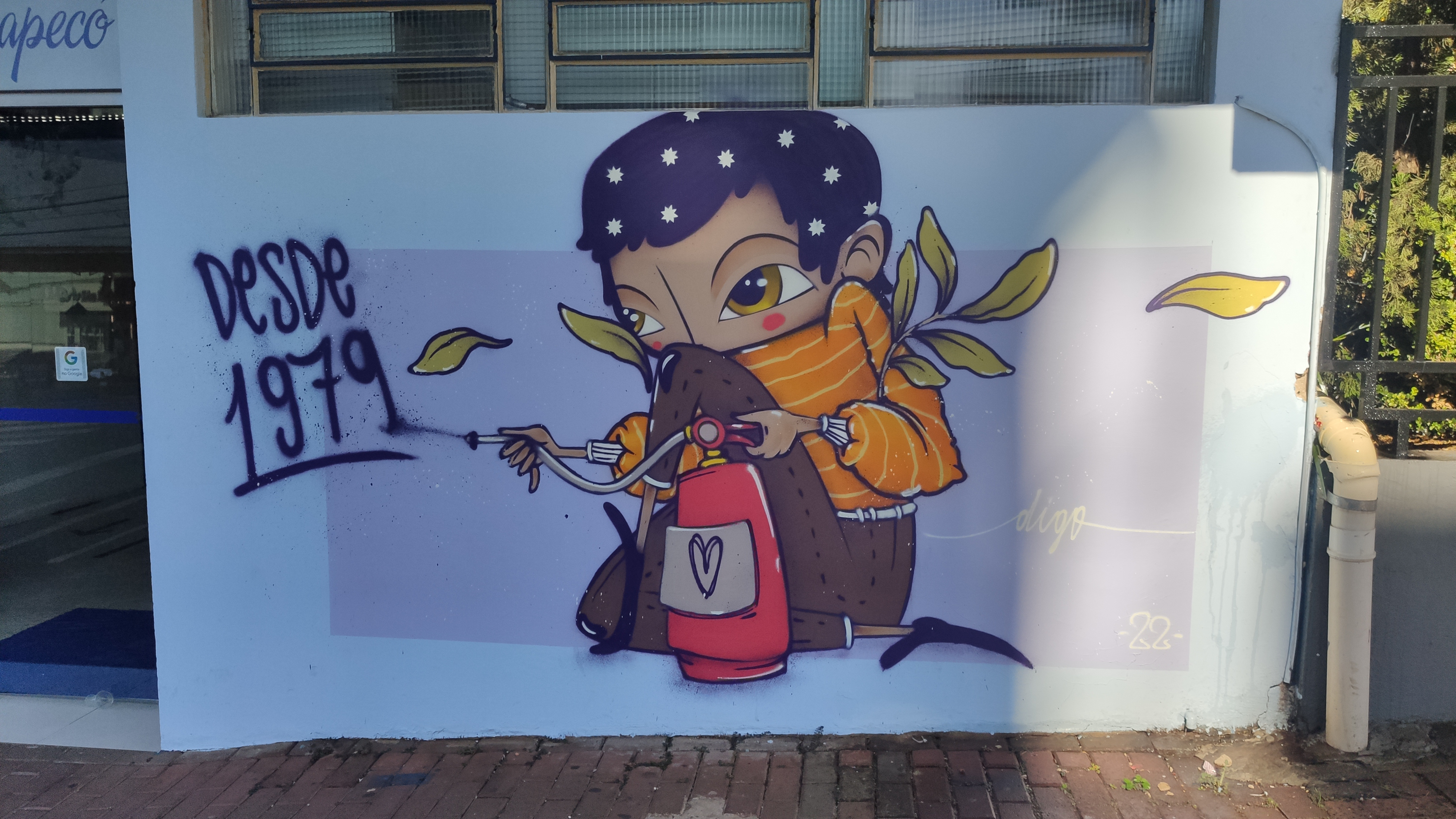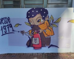 Segundo ele, sua parte no mural foi desenvolvida a partir de elementos já presentes no seu estilo. É um personagem já estabelecido no meu trabalho, busquei fazê-lo com referências à arte urbana, ele usa a técnica do spray com extintor, que considero bem impactante.