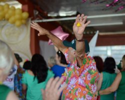 Elas e mais cerca de 1.800 idosos de Chapecó participaram na quinta-feira (08) do Carnaval da Melhor Idade que aconteceu na Cidade do Idoso e reuniu representantes dos 70 Grupos de Idosos de Chapecó. O evento foi realizado pela Administração Municipal, por meio da Secretaria de Assistência Social e contou com o apoio e parceria da Diretoria Geral dos Idosos. Ao som de marchinhas como Mamãe eu quero, Oh Jardineira, Cachaça, Me dá um dinheiro aí, Acorda Maria Bonita eles dançaram, pularam e animaram o Carnaval que já é tradicional no Município.