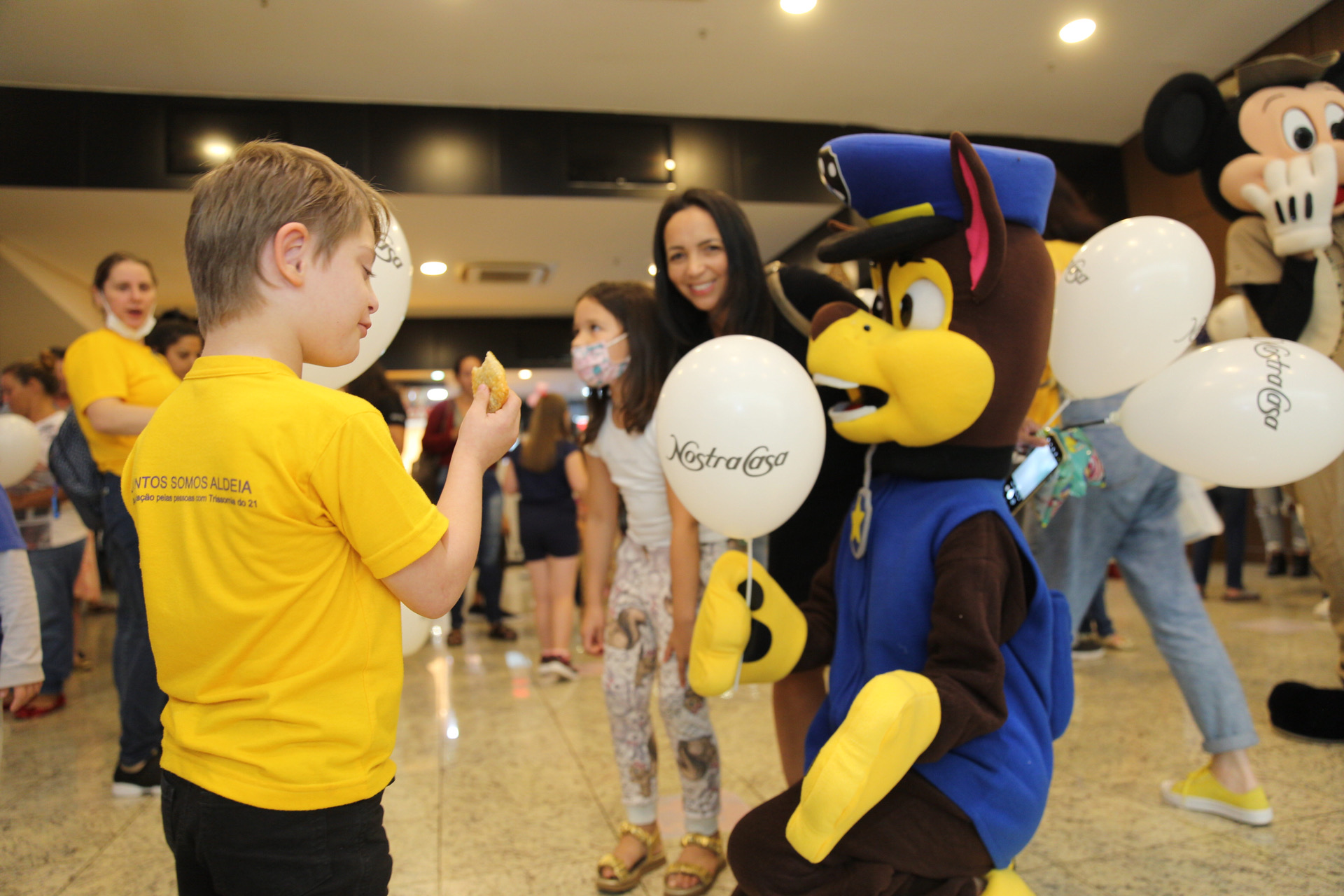 Uma ação de inclusão foi realizada na tarde desta terça-feira, numa parceria da Secretaria de Educação e o Shopping Pátio Chapecó. Alunos com Síndrome de Down da Rede Municipal de Ensino assistiram ao filme Coração de Fogo, no cinema do shopping, e ainda tiveram lanche e brincadeiras com personagens de desenhos animados e filmes infantis.