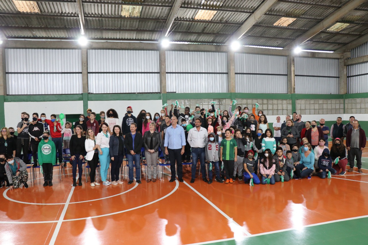 Na manhã desta quinta-feira, foram inauguradas as obras de conclusão do fechamento da quadra coberta, do toldo de acesso ao ginásio e de uma sala de aula construída dentro do ginásio da EBM Fedelino Machado dos Santos, que fica no bairro Efapi.