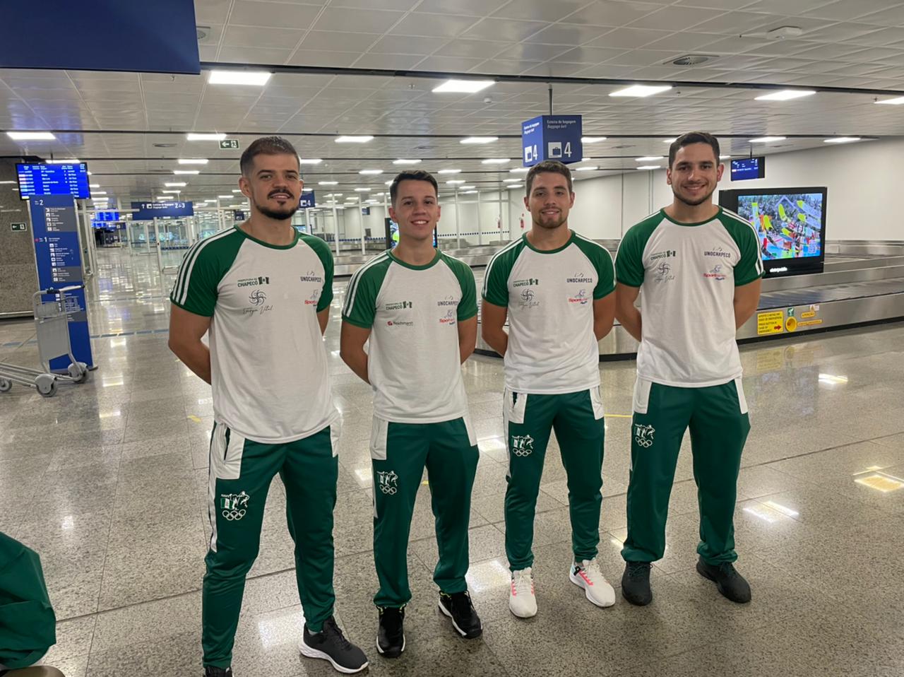 Quatro atletas da equipe Unochapecó/Arawaza Brasil/Academia Reação/Clinica Energia Vital/Prefeitura de Chapecó de karate, viajaram nesta quinta-feira para Caucaia, no Ceará, onde chegaram durante a tarde.
