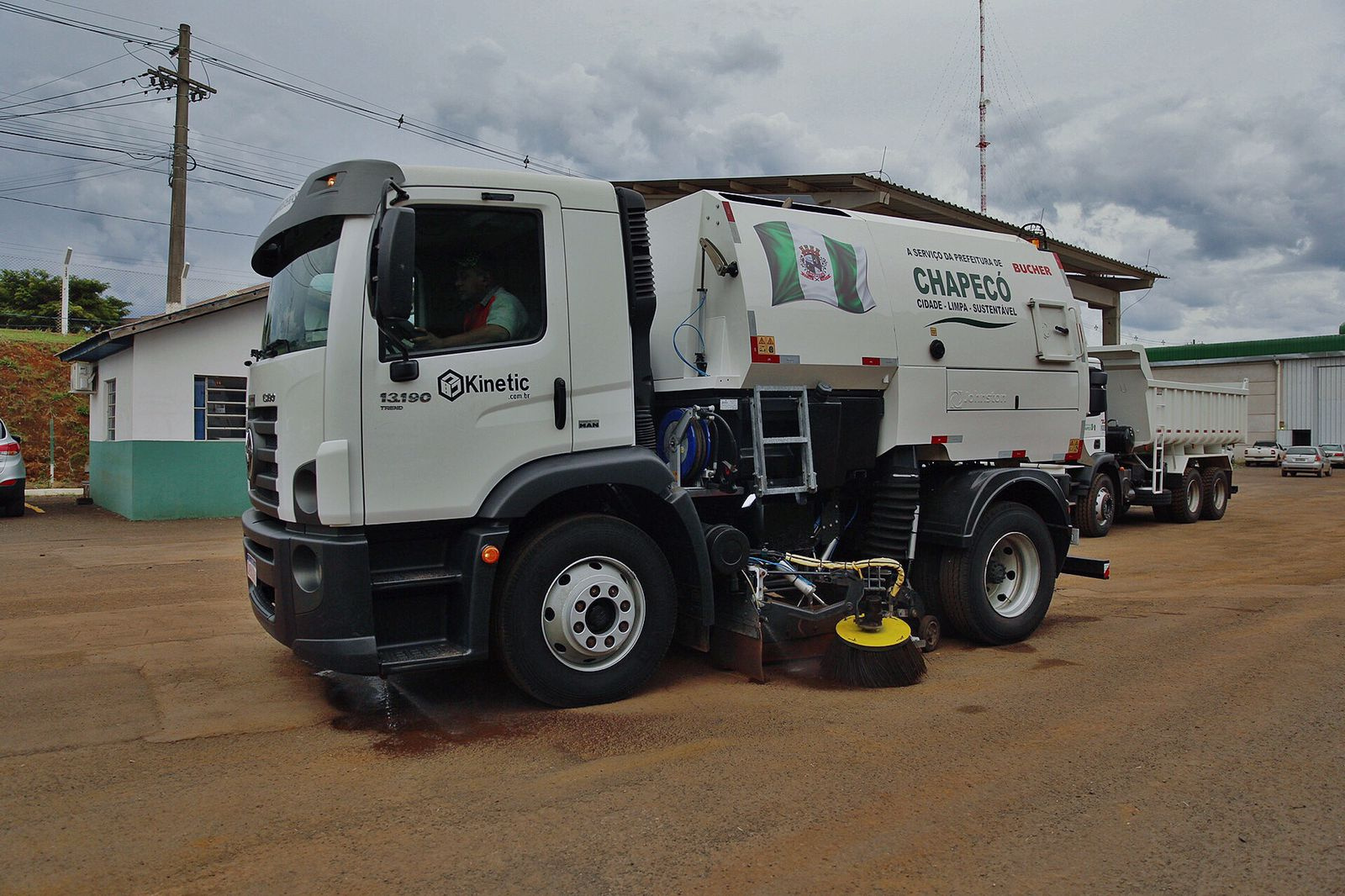 Um caminhão varredeira é uma das novidades nos serviços de limpeza das ruas de Chapecó, que passou a funcionar nesta semana. O equipamento foi adquirido pela empresa Bonin, que venceu a licitação para a varrição nos próximos quatro anos.