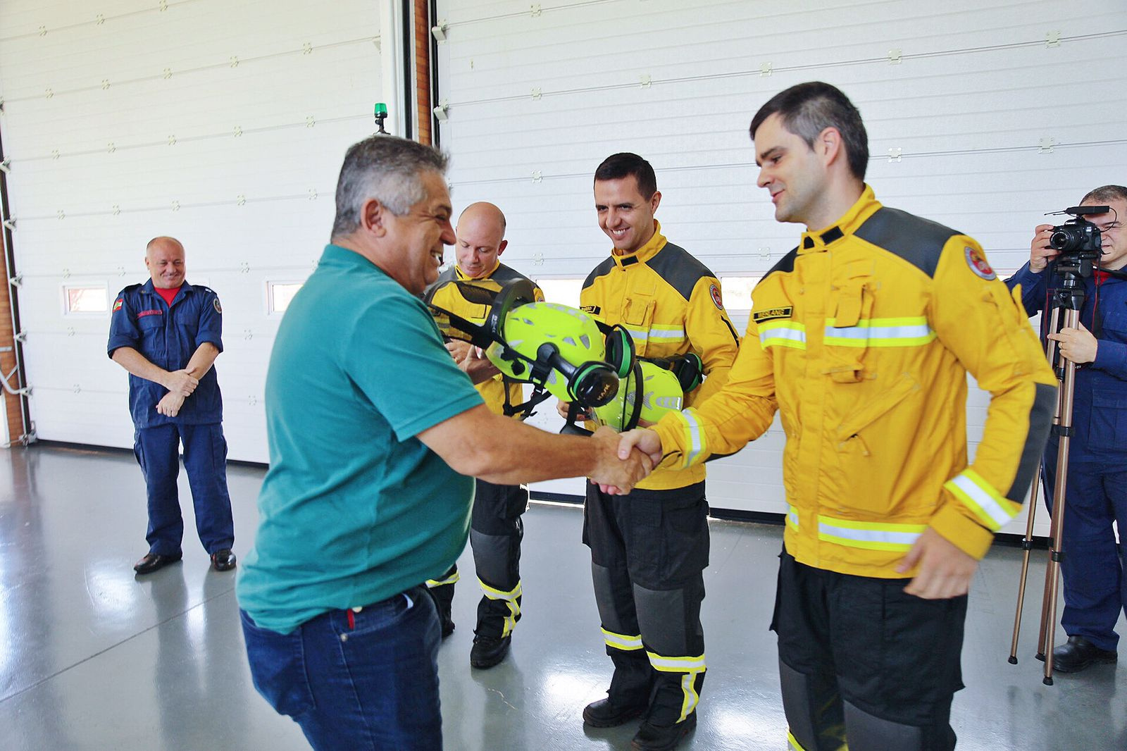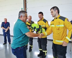 O prefeito de Chapecó, João Rodrigues, participou na manhã desta quinta-feira do ato de entrega de 45 conjuntos de capacetes e Equipamentos de Proteção Individual "multimissão" para os Bombeiros de Chapecó.