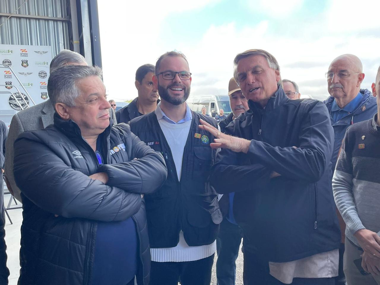 É sempre um prazer receber o Presidente Jair Bolsonaro em nossa cidade, disse o prefeito João Rodrigues, lembrando que o presidente fez uma escala no aeroporto de Chapecó em 2020 e, em 2021, esteve duas vezes no município, a primeira para conferir o Centro Avançado de Atendimento Covid, que foi um hospital de campanha montado no Centro de Eventos, e a segunda para conferir as obras de melhoria da Arena Condá, além da motociata.