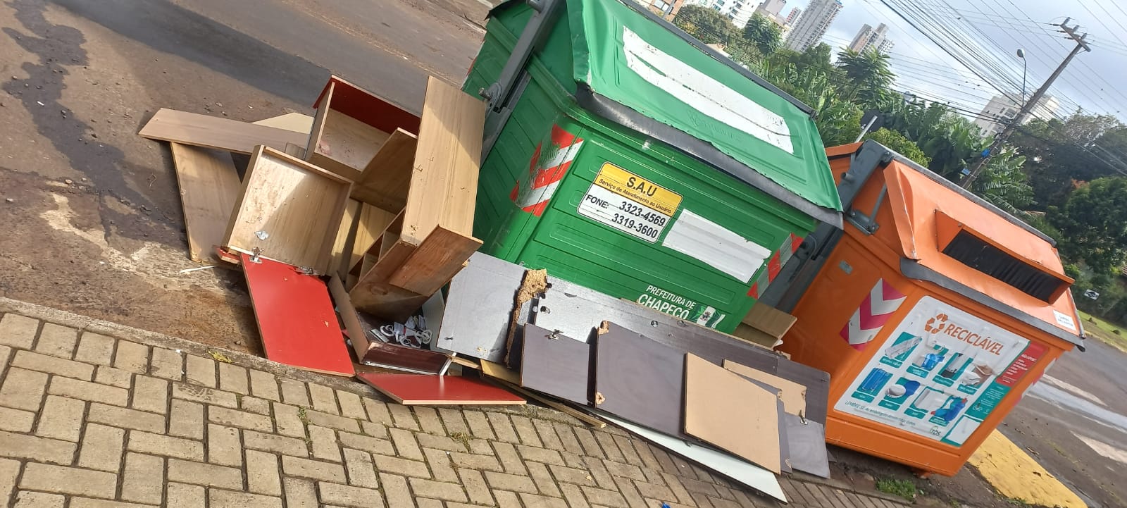 Nós temos muitas situações de descarte ao lado em vez de dentro das lixeiras/contêineres, situações de descarte de material em local inadequado, como por exemplo de mecânica autopeças que são colocadas em áreas clandestinas e nos contêineres, o que não é permitido. Pedimos que as pessoas façam o descarte correto pois assim colaboram com o meio ambiente e deixam a cidade mais bonita, afirmou a gerente de Saneamento da Secretaria de Infraestrutura, Graciela Heckler.