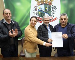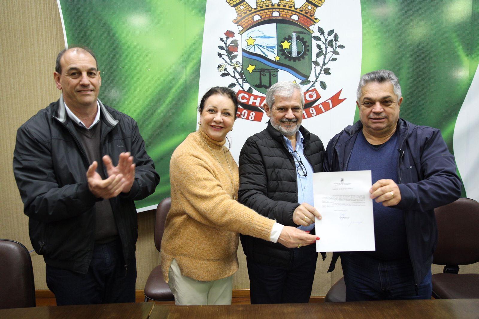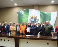 Um pacote de R$ 37,4 milhões em obras tiveram suas ordens de serviço assinadas no início da tarde desta sexta-feira, no auditório da prefeitura de Chapecó, pelo prefeito João Rodrigues. Também participaram da assinatura o vice-prefeito, Itamar Agnoletto, o secretário de Governo, Thiago Etges, o secretário de Planejamento e Desenvolvimento, Valmor Scolari, a secretária de Educação, Astrit Savaris Tozzo, o superintendente da Grande Efapi, Claimar de Conto, o vice-presidente da Câmara de Vereadores, Nelson Krombauer, a subcomandante do 6º Batalhão de Bombeiros Militar de Chapecó, major Gauana Elis Pozzan Ecco, além de vereadores, representantes de entidades e outras lideranças.